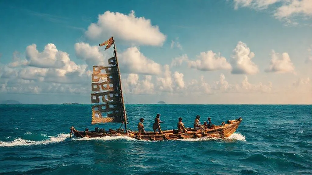 Navegar uma jangada exige adaptação. Em vez de instrumentos modernos, a compreensão das correntes e padrões de vento é essencial.